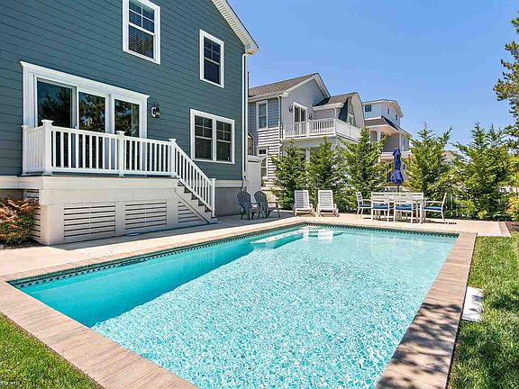 Stunning Custom Built home by renowned Tom Welsh Builders. 6 bedroom, 5 full bath, and one half bath home with pool and garage comes fully furnished and in turn key condition. Located just a few blocks to the beach and a couple of blocks to town this home offers everything today's buyer at the Shore is looking for. The fist floor has 2 large bedrooms (one en suite) and entertainment room with wet bar off the back of the home which flows out to the pool area. The 13' x 24' pool has a large area for lounge chairs, dining and barbecues. The second floor you are greeted by the spacious Living room and large chefs Kitchen. The Kitchen is finished with stainless steel Jenn Air appliances, granite counter tops, and a beautiful subway tile backslash, and huge center island. Off of the Kitchen is the large walk-in pantry and dining area with sliding glass doors to the huge street side fiberglass deck with Ocean views. Two junior master suite bedrooms and a powder room are also located on the second floor. The master suite has a walk-in closet, spacious master bathroom with his and her sinks, granite counters, large soaking tub and big tile shower. Last but not least the Master Bedroom has its own private fiberglass deck with Ocean view. Hardie plank exterior siding, finished on site hardwood floors, Ipe mahogany first floor decks, 3 zone heat & A/C, etc.. Past rental income approx. $165,000