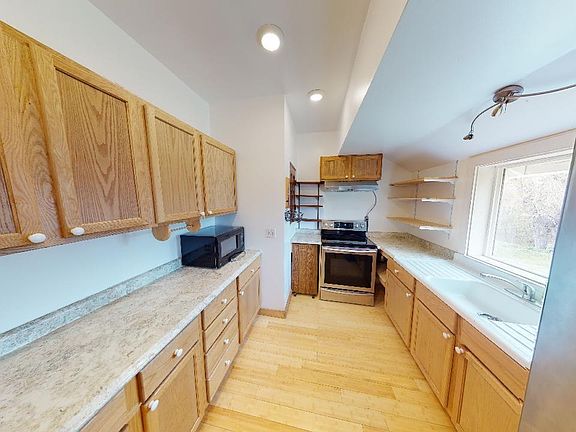 Lovin the hardwood floors, original woodwork, and stain glass windows in this 4 bedroom-2 bath raised ranch house! Check out the extra loft area above the double garage! Could be a guest area, workshop, or craft room. Remodeled kitchen, newer shingles, with extra living space on lower level. Can't beat the price of this small town home with the low interest rates!! The seller is having the