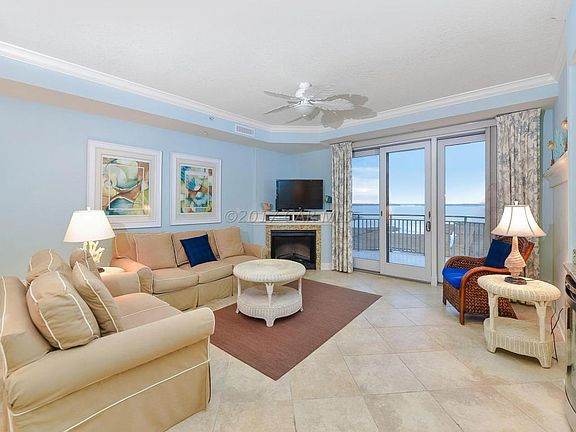 Gorgeous Bay Front & Sunset Views from this luxury 3 Bedroom Residence at Rivendell. Master Bedroom features floor to ceiling window with bay views. Master Bath has a jetted tub and tile surround shower with glass enclosure. Open concept living, dining, kitchen featuring fireplace, wet bar, breakfast bar, stainless steel appliances, Granite Counter Tops, tile and carpeted floors. Spacious outdoor deck.Enjoy the Indoor or Outdoor Pool with Sundeck, Fitness Center and In Building Restaurant. Close to shops and Dining - and just 2 blocks to the beach. L&N Mgmt Co. requires buyer pays $70 Transfer Fee and $200 Move-In Fee.