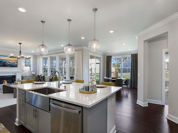 This new two-story home offers space for the everyone to enjoy. The main level has an open design among the living and dining areas, with access to a screened porch. A study and bedroom for guests frame the space. Upstairs are a game room, loft and three more bedrooms, including the owner’s suite, while an optional finished lower level includes another bedroom and an outdoor patio.