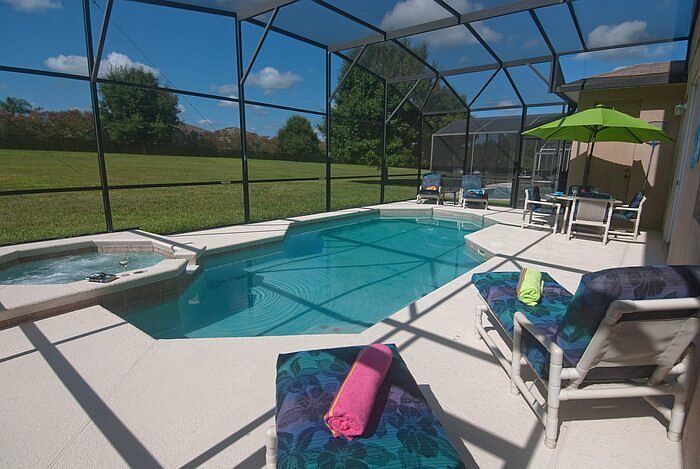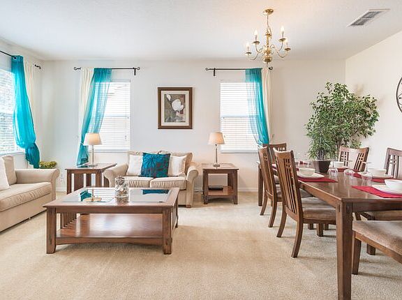 This property is a corporate rental. Please note that the monthly rental price for this property is dynamic and subject to seasonal adjustments. For an accurate quote, provide us with your intended move-in and move-out dates. Bigger than average vacation home that has luxurious, spacious, and beautifully furnished two-story home. Fully equipped to keep your family vacationing in style, this home offers a choice of 3 living areas in which to relax, 2 dining areas - as well as a fabulous games room! The home comes with complimentary WiFi, cable TV, game console and has AC for your comfort. The home can accommodate up to ten people in total comfort so no matter how large your family, there will always be plenty of space! The home and pool are professionally managed and maintained, ensuring your stay is worry-free Property Overview South-facing private pool with relaxing spa Conservation views - not overlooked Multi-coloured pool light - ideal for nighttime swimming Spacious, beautifully furnished home with 3 family lounges Free Wi-Fi, local calls & cable TV 3 Master Suites all with en-suite bathrooms TVs in all bedrooms Games Room with arcade game Full air conditioning Private laundry facilities; all linens and towels provided Accommodation Living Area 1: Quiet area with comfortable sofas Living Area 2: Overlooking the pool deck with plenty of seating and TV Living Area 3: Loft area with sofas, TV & games console Kitchen: Well-equipped kitchen with breakfast bar & four bar stools Dining Area 1: Formal dining table/chairs seating six Dining Area 2: Second dining table/chairs with seating for six Games Room: Fun-filled games room featuring a pool table, foosball, dart board & arcade game Upper Level Bedroom 1: King-size bed, walk-in closet, flatscreen TV, ceiling fan. En-suite bathroom with bath, shower cubicle, double sink unit and WC Bedroom 2: Queen-size bed, slide closet, flatscreen TV, ceiling fan. En-suite bathroom with shower over bath, sink and WC Bedroom 4: Twin beds, slide closet, flatscreen TV, ceiling fan Bedroom 5: Twin beds, slide closet, flatscreen TV, ceiling fan Main Level Bedroom 3: Queen-size bed, slide closet, flatscreen TV, ceiling fan. En-suite bathroom with shower over bath, sink and WC Pool Area South-facing pool area with spa Large deck area with sun loungers and outside dining for four Outside bathroom for your convenience No rear neighbors to spoil your view Guests may use the BBQ grill at an additional cost LED lighting to enjoy the evenings around the pool Pool size: Length:28ft, Width:11ft, Depth:3ft-5ft, Spa:6ft 3\" Local Area Legacy Park is an attractive family resort on the US 27 Highway, close to the I-4, in a popular Davenport location. From here, you are a fifteen- to twenty-minute drive from most of the major Orlando attractions, including the Disney theme parks. There are several supermarkets and a wide choice of restaurants all within a short drive. The popular Champions Gate Golf Complex is just 1 mile away. The resort\'s proximity to the I-4 makes it very easy to explore Central Florida\'s many other attractions and amusement parks. Nearby Attractions Airport (Orlando International) - 40 - 45 Minutes Airport (Sanford) - 65 - 70 Minutes Busch Gardens - 65 - 70 Minutes Disney\'s Animal Kingdom - 20 - 25 Minutes Disney\'s Epcot - 25 - 30 Minutes Disney\'s Hollywood Studios - 25 - 30 Minutes Disney\'s Magic Kingdom - 25 - 30 Minutes Islands of Adventure - 35 - 40 Minutes SeaWorld - 30 - 35 Minutes Universal Studios - 35 - 40 Minutes Ideal Location Situated conveniently near Disney and Universal Studios, our home is surrounded by popular restaurants. The self-check-in process ensures a seamless start to your getaway. Family-Friendly Amenities: Traveling with little ones? Enjoy complimentary use of baby and toddler items, including highchairs and travel cots. Worry-Free Stay: Rest easy knowing our home and pool are professionally managed and maintained, ensuring a worry-free and delightful stay. Immerse yourself in the perfect blend of comfort, entertainment, and convenience at our enchanting vacation home. Book now for an unforgettable escape! Ellis Exclusive Villas We are offering a wide selection of family-friendly vacation homes in Orlando. We have vacation rentals of all types, from 3 to 10-bedroom homes with private pools. Dedicated to creating the perfect vacation. Our local team is on hand to respond to your needs 7 days a week. Book your perfect Florida family vacation getaway today. We look forward to welcoming you! Other Things to Note POOL HEATING: This is recommended from October through April to enhance the enjoyment of your pool time. This home has a new electric pool heater and requires a 3-day minimum for the service to be activated. The cost is $35 per day and is best added prior to arrival so the pool is warm when you arrive. SPA: If you would like the spillover spa to be heated you will need to add pool heat to your reservation PET FRIENDLY: This is a pet-friendly listing for pets who qualify. Please message us before booking to see if your pets qualify. There is an additional flat fee for bringing a pet to cover the cleaner\'s time. All pets must be house-trained and well-behaved. Any damage will be charged to the guest. LAST MINUTE BOOKINGS: Bookings made within 14 days of the arrival date must check in during office hours before the access information is released. The credit/debit card used for payment must be shown along with a valid driving license or passport in the same name as the card. As well as a utility bill with the same address as the card billing address. Pre-paid cards are not accepted. **Guests will be required to sign a Rental Agreement and provide a copy of their ID. Contact us to schedule a showing.