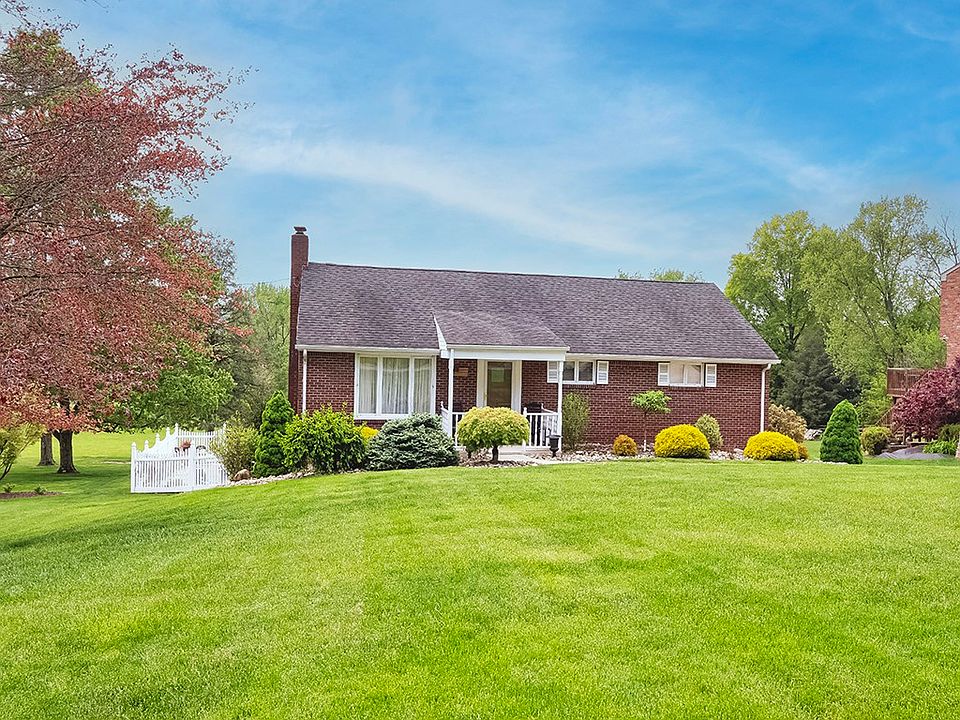 This stunning brick ranch is perched on a gorgeous manicured lot on a quiet cul-de-sac. Lovingly maintained, classy & immaculate. Enter from the covered front porch into the welcoming open floor plan. The large living room features include HW floors, log burning stone fireplace, crown moldings & opens to the dining area & walk out sunroom. The charming fully equipped eat in kitchen features quartz counter tops, tile floor, and a direct view of the back yard. The finished lower-level walkout game room is inviting with a stone wood burner fireplace & loads of storage. The attached laundry room & full bath make for easy access to the in-ground pool & covered patio. From the laundry room access the oversized 2 car garage & newer wrap around concrete driveway. The back yard & patio area is an oasis so get ready for summertime fun where you'll enjoy relaxing in a tranquil setting with a magnificent back yard view. Great location, convenient to Rt 19 & 79, shopping, dining, & entertainment
