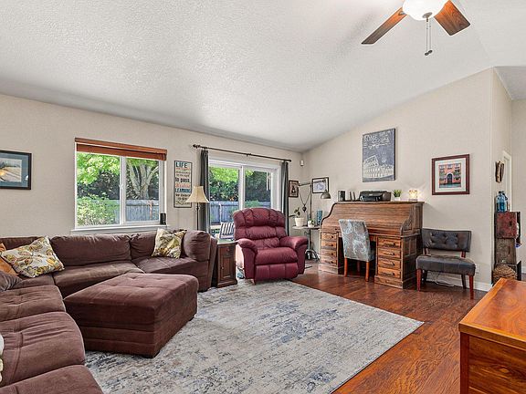 Neat as a pin! Be impressed with this beautifully kept, 1,248 sq.ft., 3 bedroom, 2 bathroom, ranch style home on one level acre! Enter the light and bright living room with vaulted ceiling & sliding glass door to back yard. Beautiful laminate flooring throughout most of home. The efficient kitchen has Stainless steel appliances, track lighting and is open to dining area. Laundry room has great storage too! Guest Bathroom is on the way to both good-sized guest bedrooms. Master bedroom has vaulted ceiling with fan & walk-in closet. You will feel pampered in the Master bathroom open tiled shower with double shower heads! Large fenced back yard great for entertaining, pets or gardening. Not far from town with low county taxes & high-speed internet. Call to schedule your tour today!