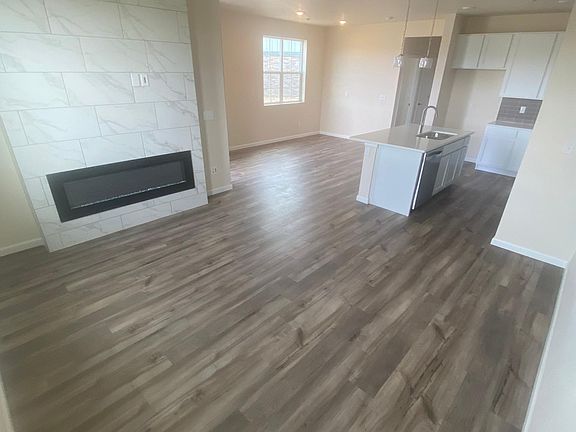 The morning sun cascades in this beautiful sunny unit! One of the few that back to an open spacious area with a bike path that connects to over 100 miles of trails throughout Boulder county. Old town Erie, with wonderful restaurants, bars, coffee shops are all very walkable. The library and Erie Rec center are across the street from these units. This is a new custom home with 1775 sq.ft., 3 bedrooms. 2.5 baths. The kitchen has s/s appliances, quartzite counters, beautiful modern fireplace. The master bath is huge with sunken tub, shower with a shower seat & marbleized floor tile. The water closet has a sunny window as well & a large walk in closet. 2 garage spaces, kiddie park next door. Available today! 1 year lease, tenant pays utilities, water is included.