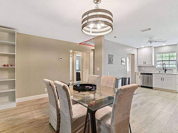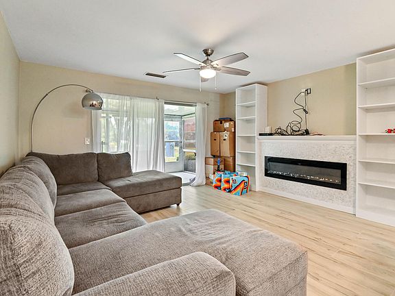Step into luxury with this meticulously upgraded home featuring stunning 9.5'' x 60'' Italian porcelain wood plank tiles throughout. The kitchen is a chef's dream, boasting stainless steel appliances, exquisite quartz countertops imported from Israel, and a beautiful ''champagne'' subway tile backsplash. Custom 42'' cabinets with corner lazy Susan provide ultimate storage solutions, while the removal of a kitchen wall has created a seamless open-concept living space.Enjoy modern elegance with quartz and granite bathroom vanities, a stackable washer and dryer discreetly tucked behind a stylish barn door, and contemporary light fixtures and ceiling fans. The home also features 6'' baseboards, Decora light switches, and an additional A/C vent for rapid cooling. Accordion shutters offer full protection, and the master bedroom impresses with double closets and pull-down stairs leading to an enormous attic. New blinds adorn windows throughout, and a screened patio provides a serene outdoor retreat.