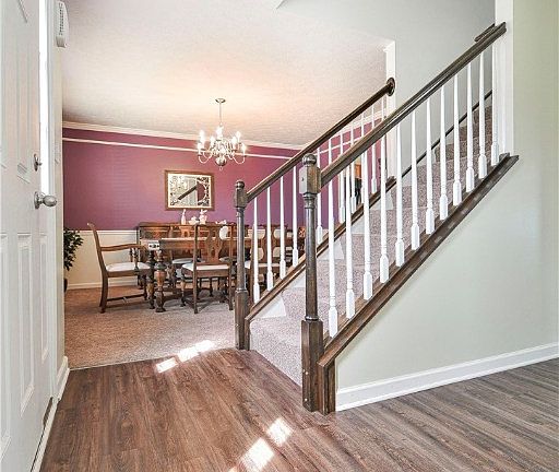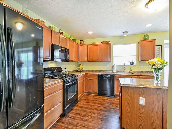 Great and spacious home in the Sebright plan. First floor offers open layout with living room, dining room kitchen and family room. Luxury vinyl plank flooring in the entry and kitchen area. Kitchen features solid wood cabinetry, center island and sliding doors to the large composite deck. Open handrail staircase leads to the second floor with large Master Bedroom suite with walk in closet and private bathroom. Other three bedrooms, full bathroom and conveniently located laundry room complete the second floor. Finished lower level offers walk out to the stone patio overlooking flat back yard.
