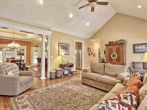 Lake View! This home has it all! Custom Built, One Story Brick Beauty with a Welcoming Front Porch & View of the Lake!!! Gated community. Deeded boat slip (B-28). Quiet cul-de-sac. Great Room has cathedral ceiling, gas fireplace & gorgeous bamboo hardwood flooring throughout. Gourmet Kitchen with upscale stainless steel appliances & custom cabinets. Master Suite has large custom closet & fabulous Bath with heated tiled floor. Office/Hobby Room. Attic Storage w/ full staircase. 3 season enclosed Patio. 3 car Garage & Workshop area. Full gutters & covers. Sprinkler System w/ sep. meter. Nature trail behind home leading to Putting Greens, Clubhouse, Tennis Courts, Marina & Pool. Many additional features!!