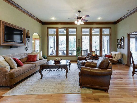 Situated between Springfield and Branson on just over an acre lot is this Magnificent Custom Built Home! 5 bedrooms, 3 baths with zoned heat and air. Large wall of windows in the main level Living Room frame the views of the secluded back yard overlooking the relaxing creek. The covered back deck on the main level is accessible from the kitchen area and Master Bedroom, and the spacious office is also located on the main level. Other features includes large Great Room with bar on upper level, Storm Shelter under the garage floor, 3 car garage, and plumbing in place for hot tub. Seller is providing a one year HSA Home Warranty. Community pool, tennis, playground and pavilions. You will love this home. Come see it for yourself! Prepare to be impressed!