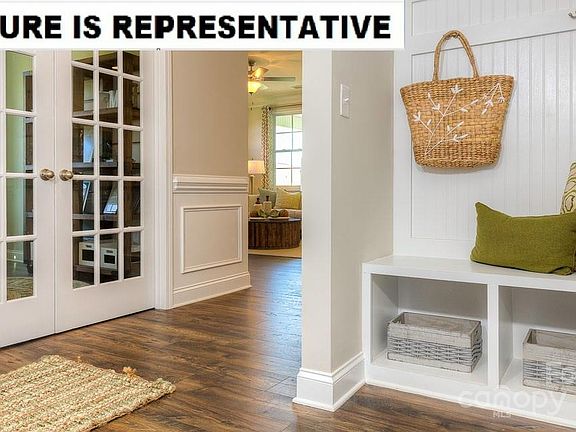 The popular Bristol plan features wide entry hallway with wainscoting, drop zone area, 9 ft ceilings and crown molding throughout home. The living room with gas fireplace is open to the spacious kitchen and adjoins the dining area. Primary bedroom is large and features double raised height vanities with quartz counters, walk in tiled shower with built in bench and expansive closet. Features of this home also include Rev Wood flooring in living areas, halls, dining and kitchen. Tile in laundry and baths, quartz counters and large island in kitchen. Gas range, microwave, dishwasher and garbage disposal are included. Home also features on demand water heater, Hardie board siding, architectural shingles, gas fireplace and much more! Come tour this beautiful community located near downtown Troutman, Lake Norman State Park and all the shopping and dining that Mooresville offers!
