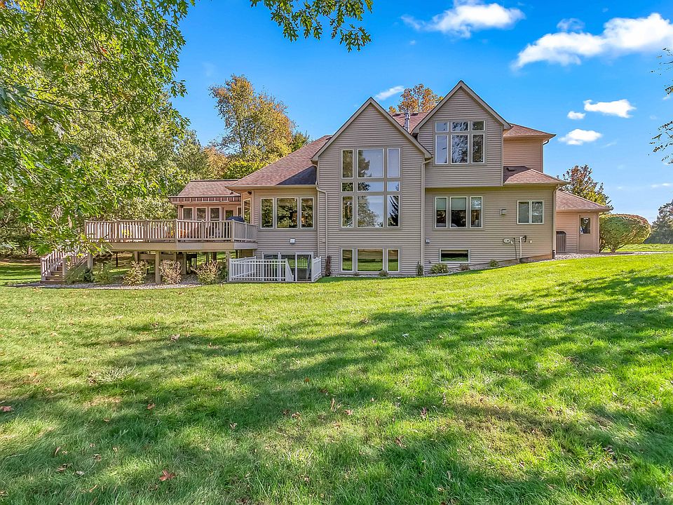 Welcome to this stunning 4-bedroom, 4-bathroom home nestled on nearly an acre at the end of a cul-de-sac in Arrowhead subdivision. This property offers a perfect blend of tranquility and convenience, featuring spacious living areas, modern amenities, and beautiful outdoor spaces. Enjoy privacy and peaceful views of wildlife, as well as stunning sunsets of North Lake! Oversized no maintenance deck with retractable awning, lower level patio, firepit, large driveway offering plenty of parking spaces for guests, as well as a 3 car attached garage. Never miss a day of enjoying the beauty of the property, no matter the weather outside with the 4 seasons room offering vaulted ceilings and windows galore! The heart of the home is a chef's dream with the stainless steel appliances which include built -in oven and microwave, dishwasher and refrigerator. Entertain guests while preparing your meals on the cooktop located on the large eat in center island. Beautiful sitting room can be used for just that or make it a formal dining room. Open living room with cathedral ceilings, gas fireplace and views of the lake. Spacious primary bedroom with ensuite offers a tray ceiling, double sided fireplace, jetted tub and 2 separate closets! Main floor laundry, walk in pantry, and half bath finish off the first floor. Custom built open staircase leading to another cozy living room with fireplace, built in shelving and bench seating. Two additional bedrooms, spacious closets with organizers and a full bathroom. The lower walk out level could be used as a private living space. Large family room, office space, bedroom, full bathroom, workout area with padded flooring, and plenty of storage space for all the extras. This home has too much to list. Call today for your private showing.