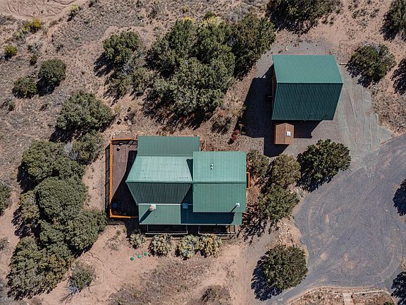 Discover this fantastic take on a large, modern custom log house and detached log guest house in beautiful La Tierra, Santa Fe. Nestled at the end of the famed Arroyo Calabasas Road, this combined 4 bedroom/ 3 bathroom, 2.5-acre property sits atop a hill with 360-degree mountain views and highlights new and old Santa Fe with horse farms, dirt roads, and fields of summer wildflowers. Rural yet only 10 minutes from downtown Santa Fe, the house is perfect for impressive entertaining in all 4 seasons with its sprawling open floor plan and huge back deck. Cozy yet spacious, the large modern kitchen overlooks the living room with high 2-story ceilings, floor-to-ceiling windows, exquisite wood detailing, and a stone fireplace. Three sets of French doors open to the wrap-around wood deck. The back stairs open to a lofted hallway and enclosed a large master bedroom and full bath, with the second bedroom and bathroom on the main floor. A finished south-facing sun room with a passive solar window provides a multi-use space. Both the main and guest houses highlight open floor plans, original wood floors, and high ceilings. The guest house has 2 bedrooms, a full bathroom, and its own laundry space. The previous owner ran a very successful Airbnb in the guest house, grossing over 40k per year for 5 years. This unique property is in a private, peaceful enclave in a close-knit community of friendly individuals who care greatly about preserving the old New Mexico environment and continuously lobby to keep this neighborhood free from excessive development.