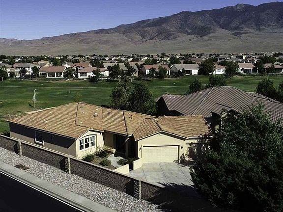 Matchless, meticulous and memorable!! Custom beauty on the 5th fairway at Dayton Valley with sweeping mountain, valley and golf course views. Immaculate inside and out, bright and open with 3 separate master suites with spacious baths. The main master boasts a jetted tub, large walk-in shower, separate vanities and sinks with a huge walk-in closet. Open kitchen with granite counters, custom maple cabinets with roll out shelving, double oven (one convection).