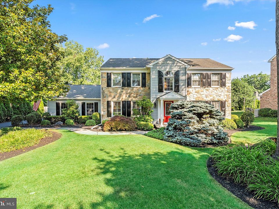 Beautiful home located in Alapocas Pointe with great curb appeal and beautiful professional landscaping is move-in ready! This 4 bedroom and 2.5 bathroom Stone colonial has been meticulously cared for by its owners. As soon as you pull up you will be impressed with this home. The soaring two-story entrance foyer welcomes you with a grand chandelier, beautiful crown molding and hardwood floors that travel throughout much of the home and a stunning oak staircase. To the left, a large formal living room with custom built-in bookshelves and plantation shutters, is spacious and great for entertaining. To the right is a large dining room with extensive woodwork and plantation shutters, perfect for when the family comes to visit. Relax in the main family room with gas-burning stone fireplace that is open to the eat-in kitchen. With skylights, two sets of sliders, and windows throughout, the kitchen is bright and beautiful! The updated kitchen features granite, “smart” appliances, instant hot water, desk area and cathedral ceilings. The sliders lead to the outside patio and Anthony Sylvan gunite pool. The outdoor space is an oasis with an aluminum fence enclosing the pool and patio area, pavers creating the front and back walkways, and a flat back yard perfect for entertaining! Completing the first floor is a half bathroom, laundry room, and 2.5 car garage. The second floor features a sitting area with hardwood floors, four bedrooms and two full bathrooms. The primary suite is peaceful with bright windows, a separate dressing area that offers two walk-in closets, a vanity area, and a large, updated bath with jetted tub and shower. Three additional bedrooms share another updated full bathroom. The finished lower level features entertaining space as well as storage. Fully waterproofed, the basement is dry and will never be concern with the gas powered generator. This home has had all windows and sliders replaced, new gutters, newer water heater, “smart” locks and thermostats, light sensor/solar charging outdoor lights, transferable HVAC warranty, gas powered generator, and more notable upgrades and features! Perfectly located in the “middle of it all”, this house is a must see!