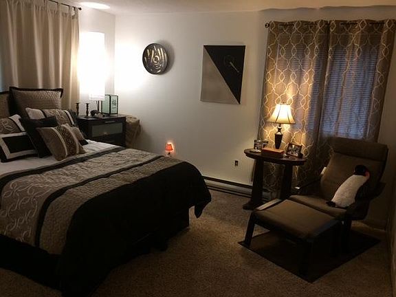 Very nice, small, well maintained condo complex on the outskirts of Worcester (Paxton line). All new paint, rugs, stainless appliances , new bathroom and more. This unit faces the courtyard. Back faces the trees. Nice views from windows Off St. assigned parking. Storage room. Clean laundry room in building that is shared by five others. Easy to maintain and clean. Two bedrooms, one full bath, living/dining room and kitchen. Tenant pays for Electric, internet, cable. Water is included in rent. Heat is electric.