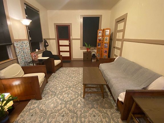 Downstairs has its own walkway with a storage area near the entrance. It is a 2-bedroom 1 bath area including a cozy living room and dining room.