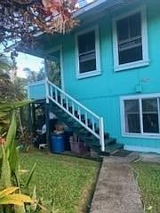 In the heart of Hilo, 121 Barenaba Lane is a hop, skip, and a jump away from shopping, convenience stores, and restaurants. Eateries such as Hilo Burger Joint, Kawamoto Store, and Hilo’s favorite Loco Moco stop — Café 100, is less than a mile away. This home on the hill provides a beautiful partial ocean view of Hilo Bay. The home has a covered carport and a personal, paved walkway. This is an upstairs/downstairs duplex-style home with a shared laundry area.