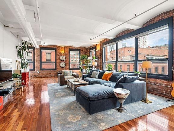 Loft living at its best awaits in this corner unit with 1516 sq ft in historic Leather District. Inviting, bright and spacious with an abundance of natural light through new oversized insulated windows. This unit features two bedrooms and two white marble full bathrooms, soaring vaulted ceilings, original brick walls and Hawaiian Koa hardwood floors throughout. Ideal floor plan for entertaining or a quiet evening at home, the large open living area offers a dining area and kitchen with breakfast bar. Spacious modern kitchen has large walk-in pantry and new dishwasher. New furnace and washer/dryer. Primary bedroom includes 2 closets & bathroom with Carrara marble walls/floor and new vanity and storage. 2nd bedroom and full bath offer privacy/distance from primary bedroom. Unit includes large locked storage area in building basement. Steps to the T, I-93, restaurants, shopping, downtown, Seaport and all the best city living has to offer.