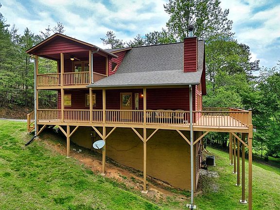 Are you ready to buy your mountain, creekside oasis located just 10 miles from the town of Murphy? As you arrive at this chalet, you will drive along a paved road leading to a gravel parking are with room for several vehicles. Step out of your car and into the home of your dreams. Upon entering, you'll notice the high wood ceilings and a stunning stone wood-burning fireplace, perfect for sipping coffee or hot chocolate on chilly nights. The living room features large windows that fill the space with ample sunlight, and the open floor plan allows easy access to the living and dining areas. The kitchen is equipped with wooden cabinets and beautiful appliances, ideal for preparing your favorite meals. Down the hall from the kitchen is the first bedroom, which includes a closet and a hall bathroom with tile flooring. Also on the main level, you'll find a TRUE laundry room featuring a washer and dryer, along with a steel rack to organize your cleaning supplies and pantry items. On the second floor, the main bedroom has walkout access to a porch, perfect for enjoying your morning coffee in the tranquility of your own space. This bedroom also includes a walk-in closet for all your clothes and is attached to a bathroom that features a double vanity and a tiled shower, providing a relaxing retreat. The spacious unfinished basement offers the opportunity to design and customize the space according to your preferences, with 14 FOOT HIGH (approx) ceilings and convenient walkout access for easy entry and exit. Step outside onto the porch or look out the window to take in the beautiful views of your backyard. There's plenty of level land available for a picnic table or some chairs near the small creek that runs through your property. Enjoy everything this house and the surrounding mountains have to offer!