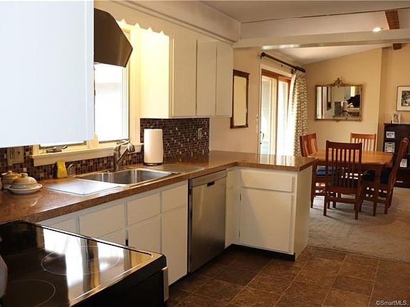 Immaculate best describes this 1975 U&R built ranch in a sought after Mansfield Center neighborhood. This lovely home has only had two owners and pride of ownership is evident all around. Walk through the front foyer and to your left is a living room with hardwood floors and cathedral ceiling. The adjoining dining room has hardwood floors. To your right is a front to back family room with an impressive stone fireplace with an open concept to the kitchen with new appliances and eating area. Down the hall separate from the rest of the house are three bedrooms all with hardwood floors and two new fully remodeled bathrooms one of which is off the master bedroom. There are many thoughtful details in this quality built home including such updates like a new Buderus boiler, new roof, recent interior and exterior paint, new carpet and so much more. The home is located near the end of the cul de sac of this very quiet road yet only minutes from UCONN, ECSU as well as easy access to Hartford or the shoreline. Enjoy the benefits of Mansfield's community Center and downtown which hosts many cultural and social activities. The home is set on a professionally landscaped yard with a Carefree storage shed and 2 car attached garage. Schedule a private tour today.