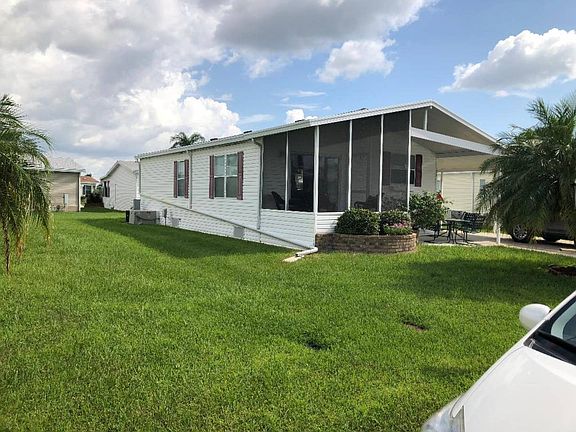 Come home to this 2 bedroom 2 bath home in The Gardens. The Gardens is a 55+ community with the lifestyle of resort living. New air conditioner was put in 2014. Screen in front lanai with tile flooring. Oversize large shed. This home has living room furniture, kitchen table, both bedrooms and beds and dressers. Washer and dryer are located in the house. This home is partially turn-key.