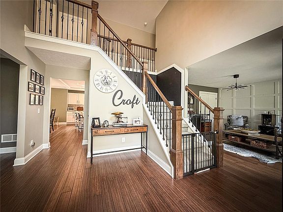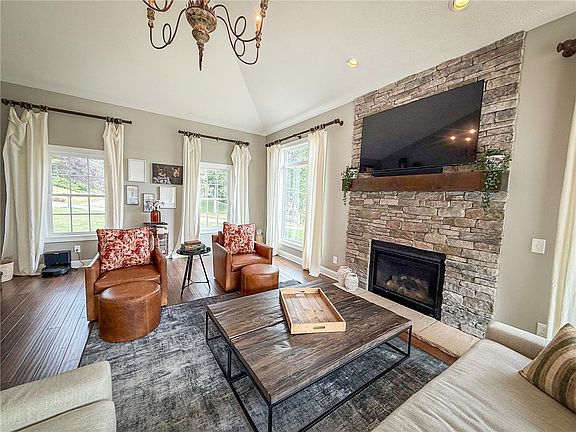 Tucked away on a premium 2.00 Acre lot, this turnkey home offers luxurious living inside and out. Enjoy a newly installed in-ground pool, walkout game room, patio, and step-down entertaining deck that is perfect for hosting or relaxing. Inside, the bright and open floor plan showcases elegant artisan moldings and paneling, upscale lighting, and hardwood floors throughout the main level. Soaring two-story and vaulted ceilings, along with a dramatic staircase and upper-level balcony, create a grand and inviting atmosphere. The gourmet kitchen features a center island, 6-burner gas range, stainless appliances, and arabesque marble backsplash, opening to a vaulted family room with stone fireplace and 12-ft glass doors to the rear deck. Highlights include: Main-level office & laundry, Private gym with rubber flooring, 3-car attached garage, & Lavish primary suite with spa-like bath. Modern amenities meet peaceful, country-style living in this exceptional home.