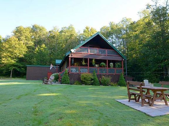 A 4 seasons outdoor enthusiast's dream in the heart of the Allegheny Mountains. Property is close to Allegheny Naional Forest. Enjoy hunting grouse, turkey, deer, bear, coyote, etc. or watch the abundant wildlife, Enjoy hiking, biking, snowmobiling, cross country skiing, snow boarding, boating, kayaking, water skiing, jet skiing, and fishing. 5 minutes to a scenic golf course and more within 30 minutes. Put your boat in the beautiful Kinzua Reservoir and/or enjoy the marina for dinner and sunset, or relax on the beach. Log home features 1st floor master bedroom with frestly renovated bathroom/walk in shower, newly renovated kitchen opened up to the living room. Finished area in the basement with a den/bedroom area. Plenty of storage throughout. The upstairs features a large bedroom with a bathroom, lounging area, covered balconey overlooking the wooded back yard and stocked pond. Extra large attached 3 bay garage with spacious workshop.
