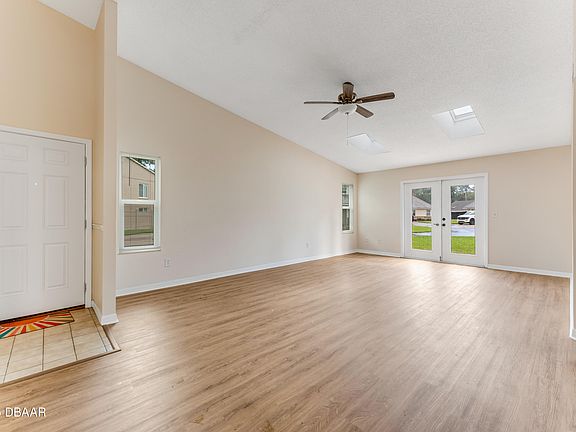 This beautiful 2-bedroom, 2-bathroom home is located in the gated community of Pelican Bay. Offers an open and spacious floor plan enhanced by soaring cathedral ceilings, creating a bright and inviting atmosphere. Recent upgrades include new kitchen cabinets, sleek granite countertops, stainless steel appliances, an updated guest shower, new vanities in both bathrooms, and fresh. exterior enhancements, new windows, and a modern front entry door. Located in the desirable Hawks Landing section, just steps from the community pool. Enjoy convenient access to Daytona Beach attractions, top-rated schools, shopping, and direct routes to I-4 and I-95.