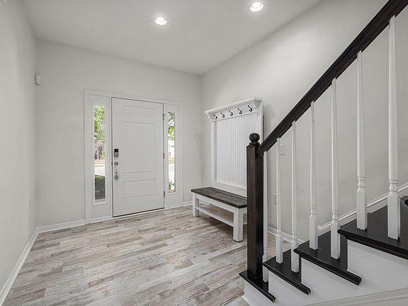 Come see this beautiful move-in ready 3 bedroom, 2.5 bath townhome with a garage in the desirable Woodcreek subdivision. This lovely home features an open floor plan perfect for entertaining, with luxury vinyl plank flooring throughout the entire first floor, gas log fireplace, kitchen island, granite countertops, tile backsplash, stainless steel appliances, and a walk-in pantry. The spacious owner's suite features a trey ceiling, TWO walk-in closets, separate garden tub and 5ft walk-in shower, dual vanity, and water closet. Take the wood stairs to the spacious secondary bedrooms, hall bathroom, and laundry room upstairs. Store extra items in the walk-in closet in bedroom 2 or in the attached storage shed. Enjoy the outdoors in a private oasis on the covered back porch or grill on the backyard patio. Reclaim free time with the included yard maintenance. Explore all the recreational amenities at the clubhouse, tennis courts, pools, fitness center, or playground. This home is convenient to shopping, restaurants, highways, and most anything you need. Don't miss this gem!