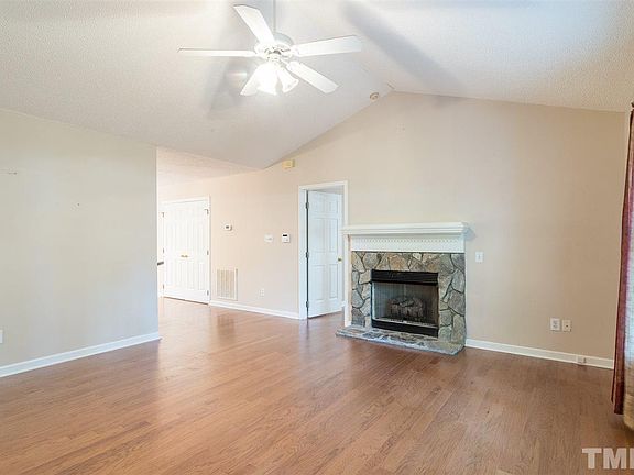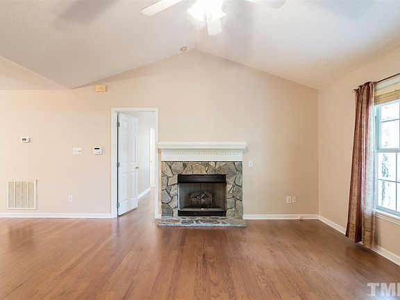 Adorable single story home with rocking chair front porch. Large living room opens up to eat-in kitchen with tons of natural light coming through the bay window overlooking the backyard. Cathedral ceilings lend to the open, bright feel of the home. Owners suite also features cathedral ceilings and owners' bath includes dual sinks and walk-in-closet. 2 additional bedrooms and shared spare bath. Don't miss the spacious sunroom/all-season room in back and all the trees and privacy the backyard has to offer.