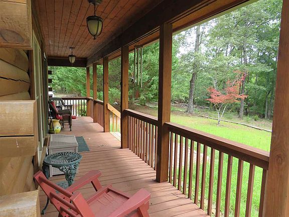 Nice 1-1/2 story log home in a great gated community with access to the Broad River. 4.21 wooded acres. Master bedroom and bath on main level. Great room with wood floors and stone fireplace and vaulted ceiling. Sliding doors to side deck. Large front porch. 2nd BR and bath on upper level with walk in closet and nice sitting area overlooking the great room. Detached double carport and log sided storage building.