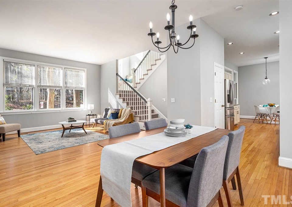 Thereâs more than one type of magic treehouse. This one, overlooking trails, a river, & hundreds of trees which will, like magic, soon burst forth with verdant greens, cocooning you in scenic nature & making you feel like youâre away from it all, even though youâre walking distance to Southern Village & minutes from UNC & downtown CH/Carrboro. Tall windows show off views from living & dining areas & two levels of decking beckon family & friends to join the fun. MIL suite/teen haven basement too? Magical!