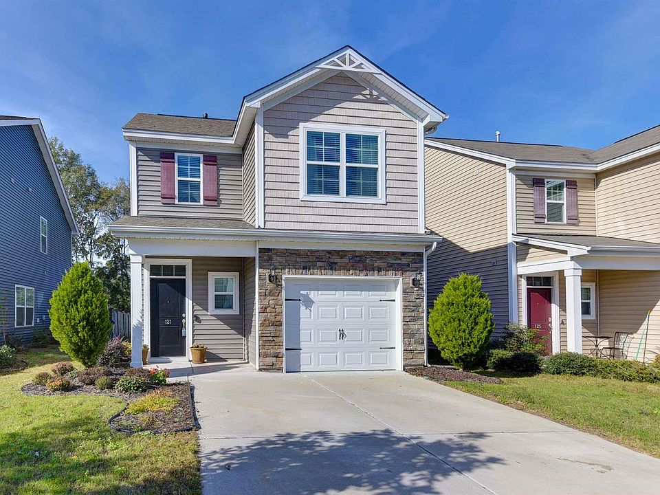 This beautiful smart-home is a three bed, two and a half bath model called Underwood, built by Mungo Homes in 2017. Seller made incredible improvements and maintained the state of the house. Both levels feature laminate flooring and many upgrades made after purchased. Stainless steel appliances decorates a spacious kitchen, which overlooks large family room with built-in fireplace. In house speaker system added with construction. Upstairs, primary suite features double-vanity full bath, with sizeable walk in closet. Two secondary bedrooms contain private closets, with full bath and features double-vanity, at top stairs with laundry.