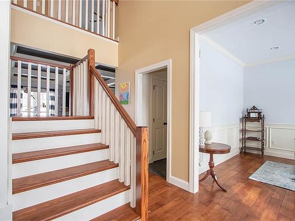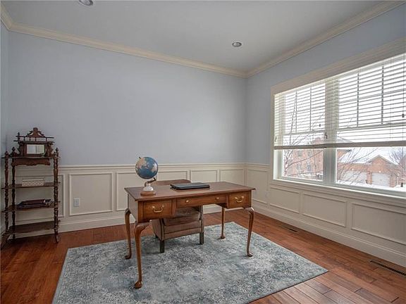 An absolutely amazing custom built chalet home located in desirable Brighton Fields. Welcoming two story foyer with open staircase, a gorgeous gourmet kitchen with two toned cabinetry, granite counter-tops, large easy access pantry, stainless appliances, and a large island which opens to the family room with coffered ceilings and stone fireplace! Formal dining room features wainscoting and crown molding. First floor office and a marbled floored powder room. Second floor has 4 spacious bedrooms, laundry, and extra storage! Large master with spa tub and great closets. All rooms are spacious and have great closets! HUGE basement, ready for your personal touch. Large rear deck, great for entertaining, enjoy the fire-pit and enjoy the putting green! Minutes from Rt. 376, walking distance to award winning Dutch Ridge Elementary.