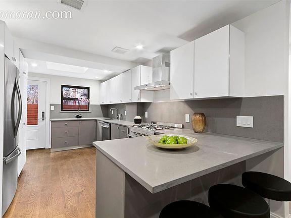 This beautiful Crown Heights Brownstone home is ready for move-in. Built 19.5X40 this three-unit townhouse has four floors plus a basement and spans approximately 4000 square feet. The owner's garden duplex with additional storage/cellar area has three bedrooms, three full baths, and boasts rich oak flooring throughout. On the garden level, the generous living and dining area is perfectly situated adjacent to a sleek open concept kitchen featuring high-end stainless steel appliances, stone counter tops, and a skylight. The top two floors, high income producing two bedroom rental apartments are currently vacant. They are in top shape with all the convenience renters look for - CAC and modern kitchens and bathrooms. A bulkhead to the roof opens up with views of the downtown Manhattan skyline. All of this in proximity to the C train at Kingston-Throop Avenue and the A train at Fulton Park. This home is at the perfect intersection of old charm and contemporary conveniences. Please call for a showing.