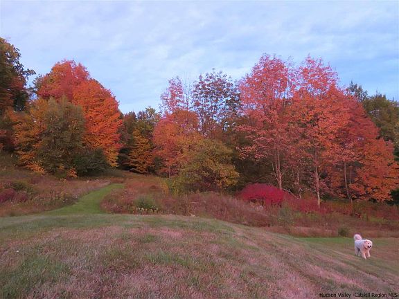 Buy now and cozy up to the crackling sounds of wood burning indoors or out. Straw Hill Farm is a property that will truly delight and enchant in every season. 11+ private acres nestled on the south side of a mountain with stunning long views and breathtaking beauty. The farmhouse has been lovingly updated with modern and high quality amenities while retaining the charm and simplicity of another time. Enjoy the spring-fed, saltwater pool and open meadows for running and playing to your heart's content. The all original, hand-hewn 3,000 sq ft English barn is dated between 1810 and 1850 is in exceptional condition per engineer report. The metal roof has kept the inside of the barn dry. There is a lower level that was once used to entertain guests and still houses a 20 foot wet bar with hand made tin mood lighting and a poured concrete slab. The barn overlooks the pool and pond and has incredible potential, with significant improvements, for creating an awesome and open multipurpose space or can be used as a garage, wood shop, artist space or for storage. At Straw Hill Farm you'll enjoy endless hiking trails, old apple trees, a spring fed pond, established organic garden, outdoor cedar shower, rocking chair front porch, stone work, abundant wildlife and song birds and incredible sunsets -- this is paradise in the Catskill Mountains. Don't miss the well groomed and hidden private campsite with a beautiful firepit, outdoor compost toilet and 14'x20' cedar deck for used for yoga, meditation, and music flanked by two awesome maple trees and several massive glacier stones. Newly planted cedar trees and endless raspberries surround this very special spot. The magic here is the secluded location set on a town maintained dead end road within the Catskill Park, the property is just a couple of miles from state hiking trails, dramatic waterfalls, and streams and swimming holes to delight anyone including fly-fishing enthusiasts! There is a well respected local caretaker who can help out the new stewards of this magnificent property may need assistance.