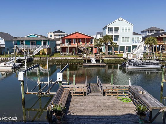 This NEWLY REMODELED, FULLY FURNISHED Canal Front 4-bedroom beach bungalow with a modern style kitchen and high cottage style wood beamed ceilings, feels cozy and comfortable with its new LVT floors throughout!! Move right in as all furniture conveys!! The fully remodeled kitchen features new navy cabinets, marble countertops, stainless steel appliances, farm sink and subway tile back splash!! The refreshed 2 bathrooms feature new vanities, lighting, toilets, and shower fixtures!! Enjoy the beautiful canal front view, boat lift, floating doc, covered back porch and clean your catch of the day at the dock!!! The dock area offers a sink and large deck for entertaining!! The property also features an oversized 2-car garage and outdoor shower!! It's only 150 yards from the beach and pier. Having a backyard on the CANAL, offers plenty to do, fishing, boating, kayaking, beach fun and the list goes on. The property has been listed as 5-star short-term rental, has 2 summer 2024 rentals that can be honored or canceled.