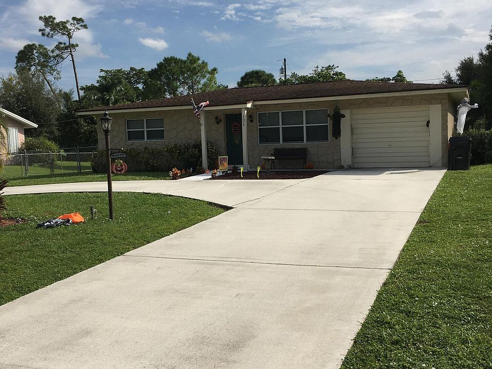 Absolutely immaculate and ready to move into. Many, many upgrades in this 2 bedroom/2 bath home. Porcelain tile floors in the living areas, laminate in the bedrooms. All windows are impact. New Stainless steel appliances plus new front loader washer and dryer. Large family room/dining room addition. New roof on the addition. Both baths are fully renovated. New A/C, new hot water heater. Fenced in private yard. Newer circular concrete driveway. Large concrete patio. .54 acres Florida Gardens is a desirable community with no HOA and close to restaurants, the turnpike, and shopping. All sizes approximate and information deemed reliable but not guaranteed.