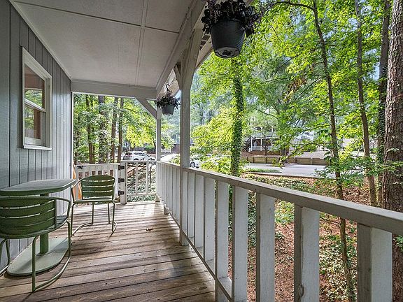 Highly sought after Cary location, tucked away in the privacy of a wooded community whilst being in the center of it all! Relax in the tree tops and enjoy morning coffee on the expansive covered front porch balcony of your end unit! An abundance of windows allow natural light to pour in and showcase a spacious, chic, freshly painted interior w/ hardwood floors. Venture outside and take a stroll on the Greenway Trail that runs adjacent to the unit! Attached storage on ground floor in back perfect for hiking gear, bikes, etc. Within steps to Shoppes of Kildaire w/ restaurants, retail & grocery. Convenient to nearby highways, 7 min to DT Cary, 10 min to Fenton Shopping & Cary Crossroads, 20 min to DT Raleigh.
