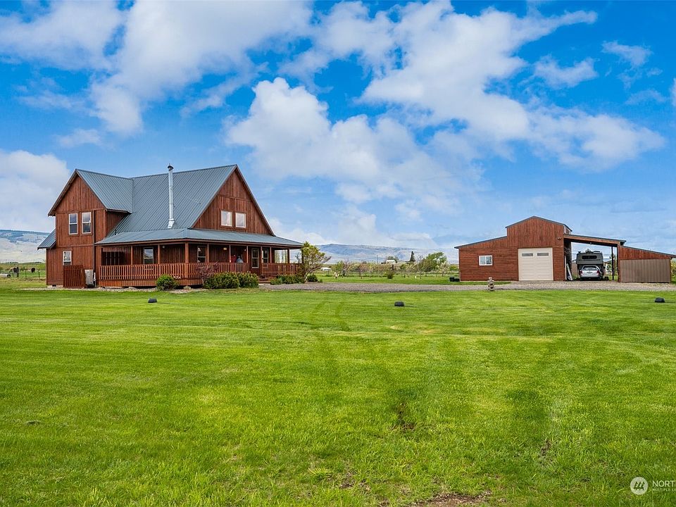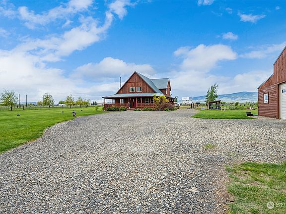 Fall in love with this Ellensburg farmhouse on 9.6 acres, all beautifully maintained. The home is equipped with all of the essentials: bright & airy vaulted ceilings, distinctive wood floors, an impressive rock fireplace. Enjoy an expansive primary suite on the upper level & two addl  bedrooms on the main floor, one w/ ensuite bathroom. Large shop with attached carport, greenhouse, chicken coop (w/ power), & stalls. Fenced/cross-fenced with paddocks & loafing sheds ready for your animals. Fenced garden area, a bevy of fruit trees, & an irrigation-fed pond (w/ private KRD turnout) to keep everything green. A gated drive for privacy & a wrap-around porch to enjoy views of the setting sun. Country living has never been easier. Welcome home!