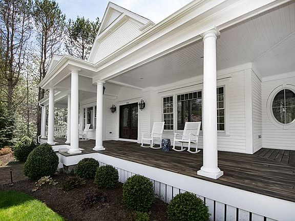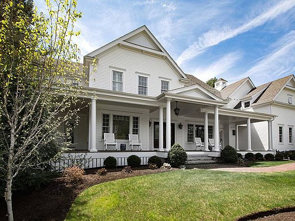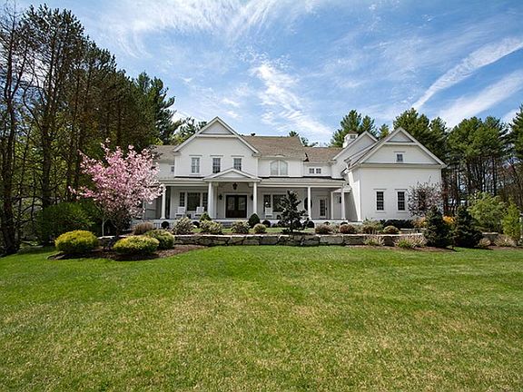 Luxury & comfort: This sophisticated custom colonial sits on over 1 acre of beautifully manicured grounds and is nothing short of spectacular. A welcoming wrap-around porch and beautiful landscapes of mature plantings and elegant walkways greet you upon arrival. The sunny, spacious interior graced with gorgeous moldings throughout, offers a balance of exquisite architectural detail, comfort and sought after amenities for modern living. Enjoy three gas fireplaces, surround sound, hardwood floors throughout and designer lighting. The gourmet kitchen is every chefs dream with Thermador appliances; including three ovens, built in separate refrigerator and freezer and an oversized kitchen island with double thick granite. The second floor has four generously sized bedrooms with cathedral ceilings and custom closets. The master suite offers three walk-in closets, cathedral ceilings and double fireplace that can also be enjoyed from the spacious, marble spa-like master bath; a true luxurious respite, complete with an exquisite claw foot tub, walk thru glass shower and double linen closets. The impressive walk out lower level offers an additional 2,000 sq ft of sunny living space that includes a gorgeous carrera marble bathroom and a butlers pantry with carrera marble countertops. Entertaining family and friends is a pleasure, whether in the media room, game room or outdoors. The outdoor landscape includes twelve zones of irrigation and accent lighting throughout. The newly built custom patio is a true outdoor living space and offers an outdoor kitchen with gas grill, refrigerator, dining area and custom designed wood burning fireplace. The backyard is not only extremely private, with a large flat yard, but also abuts beautiful conservation land. A custom build gunite salt water pool completes the back yard. You will never be in the dark with the full house generator connected to natural gas. This home truly remarkable and reflects the taste of those accustomed to the very best in quality design, finishes and lifestyle.