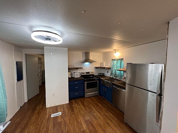 Newly remodeled manufactured home just 1.5 miles from the Fairfield Bay Marina and beautiful Greer's Ferry lake. Lots of upgrades to include luxury vinyl plank flooring, stainless steel appliances, stainless steel farm sink, Stainless refrigerator stays with home. new kitchen lower cabinets, walnut slab live edge upper kitchen shelving, stainless vent hood, new lighting throughout the home with fan combos in kitchen and front bedroom. Washer & dryer convey with home. Completely new bathrooms to include tile in front bathroom shower. This home sits on cinder block foundation and has a shingle roof with two covered decks. Large concrete driveway with covered carport. Includes a 30 Amp camper hook up.