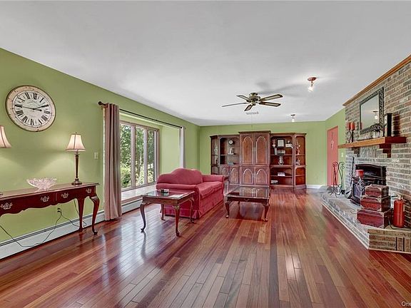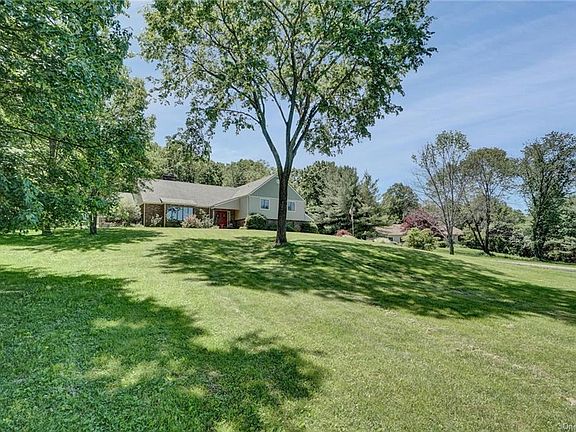 Super-sized split level set on 1.6 private acres offering the ultimate in outdoor entertaining, with an expansive two tier paver patio, outdoor kitchen and salt water inground pool. Step into the spacious entry which opens to large formal living room with wood-burning stove, eat-in kitchen with granite counter tops and access to patio, formal dining room and sunroom. The lower level features a family room with access to patio, a bar, powder room and laundry room. The upper level offers a spacious master suite with balcony, walk-in closest and renovated master bath with dual vanity and oversized shower, 3 additional bedrooms are all generous in size and you'll love the newly renovated main bath. Heated basement offers endless possibilities. Some of the recent improves include roof, siding, water treatment system, boiler, heat pump, indirect hot water heater, wood burning stove & appliances. The setting will make you feel a million miles away yet close to highways, schools & shopping.