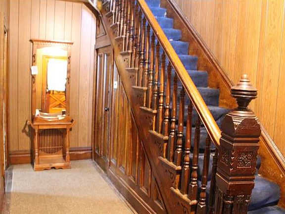 Situated on corner lot with inviting front porch this two story home has tons of potential. With original wood work untouched in entry way and throughout some of the home. Large room sizes and amazing 4 car detached garage. Being sold in "AS IS" condition but offers ton of potential to the new owner.