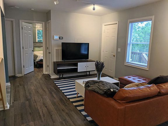 Half of a duplex - 2 Bedroom, 1 Bath. Fenced in deck private to rental unit, and dedicated parking. Access to wooded backyard with fire pit. 10 minute walk to American Tobacco Campus, less than a mile to Main Street. Unit for rent is Unfurnished. Renter responsible for Water and Electric. No Smoking.