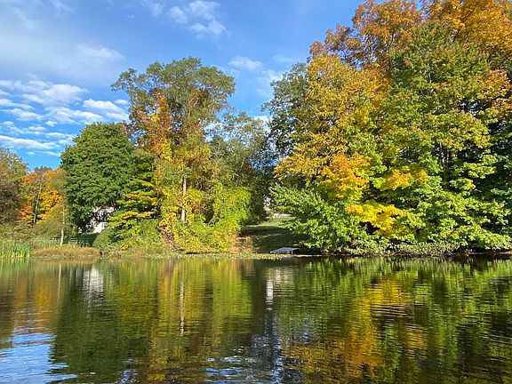 Location, location, location! Set privately behind lighted stone pillars on over 2 acres discover a recently updated 5 bedrooms, 6 bath, white clapboard colonial. All bedrooms are ensuite, 4 of the Bedroom suites are on the second floor, the 5th bedroom suite is located off the kitchen. There is a 6th bedroom with full spa bath in the the lower level currently used as a gym. 4 fireplaces and new wraparound deck. Organic lush gardens with plenty of room to play baseball and add a pool. All overlook a private refreshing spring fed lake with private dock to row, swim & fish. Grow herbs in the heated greenhouse (2000) to prepare a meal in the Chef's kitchen that opens to family room with fireplace. Walkout lower level with hardwood floors has an additional Family Room with fireplace, a butlers pantry, gym, full bathroom and laundry. You can have it all. Approx. 4,600 sqft and plenty extra FAR.