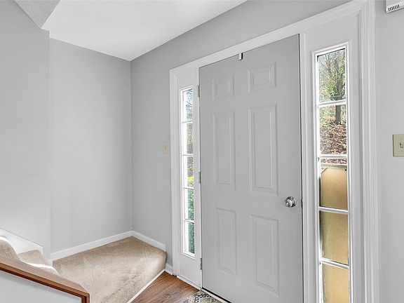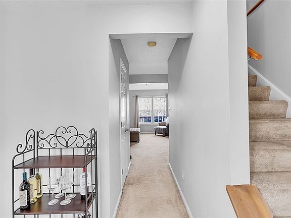 Fantastic townhome located in Meadowbrook Community! Updated kitchen with granite, backsplash, and stainless appliances, eat-in area. Living room and dining room combination. New flooring, carpets. lighting in 2015. Freshly painted in today's colors. All three bedroom have great closet space. Updated main bath with double bowl vanity, tub, and ceramic tile shower, Updated half bath on main level. Lower level is laundry and storage. Additional parking in rear with two-car garage. Community pool, clubhouse, and playground.