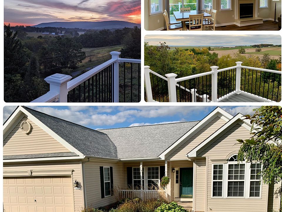 OPEN HOUSE -SUNDAY, 11/23, 1-3 PM. I can see for miles and miles.... Mesmerizing views from this beautiful spacious 4 BR/2 BA rancher with 9 ft ceilings throughout the main level plus the living room and primary suite ceilings are vaulted to 14 '-15'. The main level offers 3 bedrooms, 2 baths, formal living room, formal dining room, open combination great room, kitchen, & breakfast room, desirable split bedroom floor plan and a laundry room. Kitchen featured new ss appliances. Glass sliding doors off from the breakfast room leads to the brand new Trex type deck with stairs, the views from the deck and entire rear of the home are nothing short of incredible, offering northern, east to west views of rolling farmland, pastures, mountains & distant mountain views. The lower level offers 10 ft ceilings, huge game room, w/ glass sliding doors to back yard and cedar lined storage closet/ craft closet., Brand new permit approved 4th bedroom with large walk-in closet with NEW LVP. There's also a huge unfinished storage/utility room w built in shelves and a full 3-piece rough in for future full bath. Home is freshly painted. If you want a rancher but want tall ceilings and stop you in your track views, this is a home you will not want to miss out on seeing.. Lower level sq ft is 1752 of which 900 is finished. Public record only shows 600 fin sq ft. However, the newly finished 300 sq ft for the 4th Bedroom do not show yet. As the final permits were recently approved, and public records have not updated as of yet. Schedule your appointment now or stop out to the OPEN HOUSE.