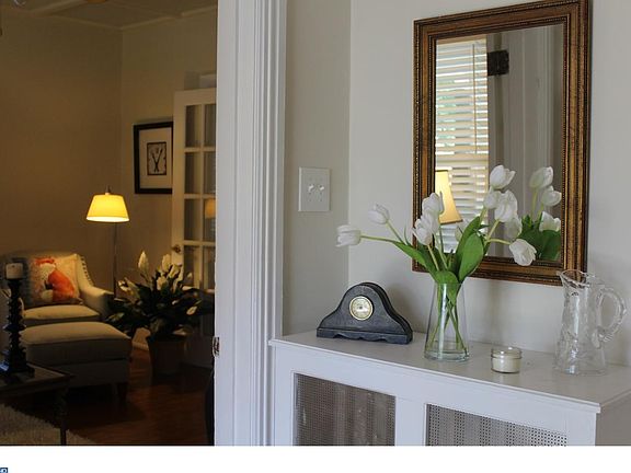 This classic and charming Wayne colonial home is located in Radnor School district and within walking distance to all of the shops and restaurants in town. Large welcoming front porch, entry foyer with turned staircase and beautiful Pennsylvania Heart Pine flooring throughout. Living room with french doors into formal dining room. Spacious kitchen with wood beamed ceiling, pretty decorative Italian tile & new Stainless Maytag dishwasher opens to family room/sunroom with lots of windows,ceramic tile flooring and a working wood burning pizza oven. First floor also has a full bath. The rear deck overlooks fenced garden. Second floor includes three spacious bedrooms and full bath. Third floor has 2 large additional rooms that could serve as bedrooms or your multipurpose choice of home office/study or play room. Basement is finished and has laundry room and lots of storage. Windows have been replaced and driveway is brand new. Great location close to Blue Route (476)and commuter train into center city. Enjoy this well maintained and spacious home in a great Wayne location.