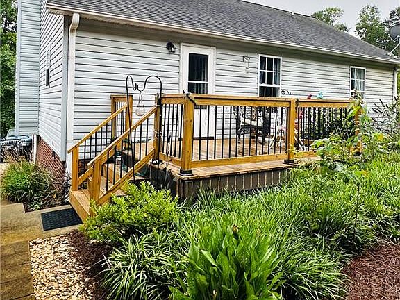 Must see Move in ready home in King. This 3 bedroom 2 full bath sits in the cul de sac. Living room with fireplace. The kitchen features a custom island that is movable and all kitchen appliances stay. Sellers put in a new deck and retaining wall in back yard. A beautiful spot to enjoy your outdoor time. Laminate flooring through out home. Laundry is in hall. Large oversized garage/storage building. 2 raised garden beds beside of the building. See agent only remarks for limited showings through remainder of August.