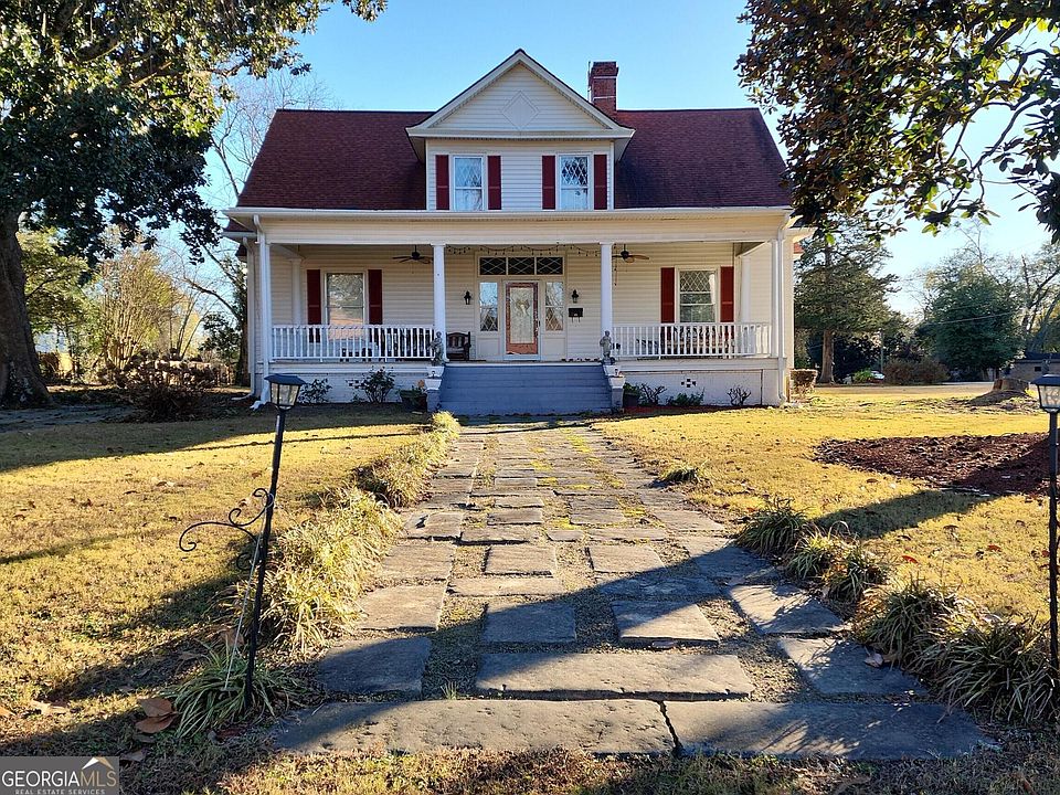 This home has so many amazing features! 2 Kitchens!! One on the main level and one upstairs! 3-car garage with plenty of space on its second level! Very spacious closets! 3 full bathrooms!! One of the bathrooms has a soak-in jet tub! The original hardwood floors in the foyer, living room, dining room, and hallway on the main floor bring elegance and durability. The dining room gives so much space for activities to enjoy and host, seating many more than 12!! The front porch is so wide and tall! Newer 55 gallon electric water heater. Previously, there was a koi pond in the backyard. It can be brought back to life or filled in. It's up to the next owner to decide! The driveway extends all the way behind the house, with the paved side on the back. Parking space in abundance! It's beautifully balanced between peace and quiet, and walking distance to local businesses! Come and tour this home, fall in love with its charm!